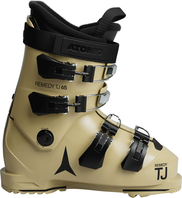 Built for junior freeskiers ready to push their limits, the Atomic Remedy TJ 65 offers pro-level design and all-day comfort in a lighter, more forgiving package. Modeled after the adult Remedy 130, it features a Power Chassis for enhanced torsional stability and edge grip, paired with a Junior Performance Shell that delivers a smooth, progressive flex ideal for lighter skiers. The Team Gold liner ensures premium comfort and performance with heat-moldable materials and a 3D Stretch Toe Box that provides extra length where it’s needed most. Dual-Sided Cuff Alignment allows a personalized stance, while RTX GripWalk Pads enhance traction and natural walking comfort. Finished with a secure 30mm Velcro Power Strap, the Remedy TJ 65 gives young chargers the stability and control to keep progressing with confidence.