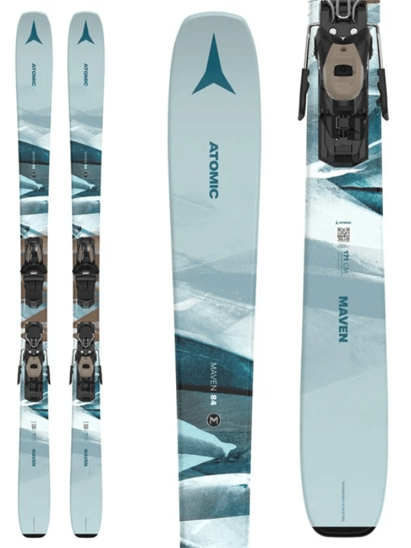 The women's Atomic Maven 84 is your go-to for effortless all-mountain skiing. With a poplar Light Woodcore and Densolite, it offers lightweight agility for quick turns without sacrificing stability. The Titanal TI Stabilizer dampens vibrations, while the Dura Cap sidewall provides solid edge grip on icy terrain. The All Mountain Rocker ensures versatility with an early rise tip and tail, and a thicker Resist Edge boosts durability. Smooth, ambitious, and built for any condition, the Maven 84 is ready to elevate your skiing game. Features: Sidecut: 114 - 83 - 98.5 Turn Radius: 13m Binding Included: Atomic M 10 GW (DIN: 3 - 10) Weight: 2600g @ 162cm Rocker: All Mountain Rocker - 15/75/10 Base Edge Angle: 1.3° Side Edge Angle: 87°