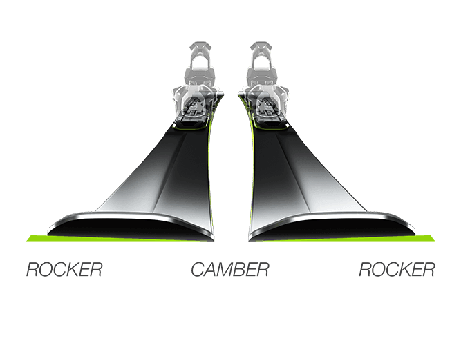 Amphibio Technology: Asymmetrical right/left ski design for optimized grip and control.