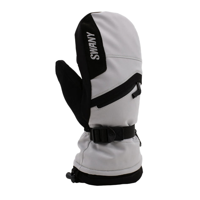 The Swany women's X-Over Mitt delivers premium warmth, dexterity, and waterproof protection in an ultra-lightweight design built for serious mountain athletes. Designed for freeride performance, it features a durable softshell and leather construction that balances flexibility and weather resistance. Insuloft 160g insulation and a Dryfinger waterproof/breathable insert ensure all-day warmth and dryness down to -10°F (-22°C). Thoughtful details like finger channels enhance mobility inside the mitt, while the utility heat pocket lets you stash a hand warmer or vent as needed. A quick-release strap, barrel lock cuff, and pre-curved construction provide a secure, comfortable fit. From stormy lift laps to high-output backcountry missions, the X-Over Mitt combines lightweight comfort, waterproof protection, and dependable warmth for every winter adventure.