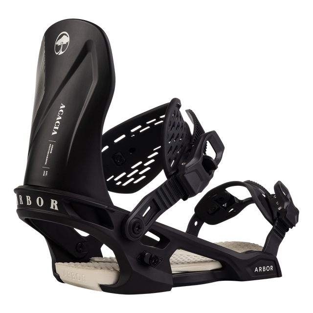 The Arbor Acacia Snowboard Binding is designed with value and progression in mind, making it an ideal choice for beginner to intermediate riders who want to explore the entire mountain with confidence. A lightweight single-mold baseplate and heel cup create a unified, forgiving flex that’s easy to control, while the adjustable EVA footbed absorbs shock and enhances comfort on long days. Ergonomically pre-curved Bow Straps and a textured stretch single-durometer ankle strap provide secure, pressure-free hold while staying out of the way for easy entry. Finished with asymmetrical highbacks, tool-less ankle and toe strap adjusters, fiberglass-reinforced buckles, and a 4x4 universal disc, the Acacia binding delivers smooth flex, easy setup, and progression-friendly performance for riders growing their skills all over the mountain.